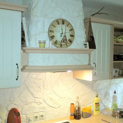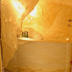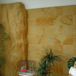 Tadelakt ist eine alte marokkanische Putztechnik auf Kalkbasis. Durch die starke Verdichtung bei der Verarbeitung wird die Oberfläche fest, wasserbeständig und glänzend. Tadelakt ist eine sehr aufwendige Technik, die nur wenige Maler beherrschen. Bei der Steinimitation wird ein Putz nach dem Auftragen so modelliert, dass er einen natürlichen Look bekommt.